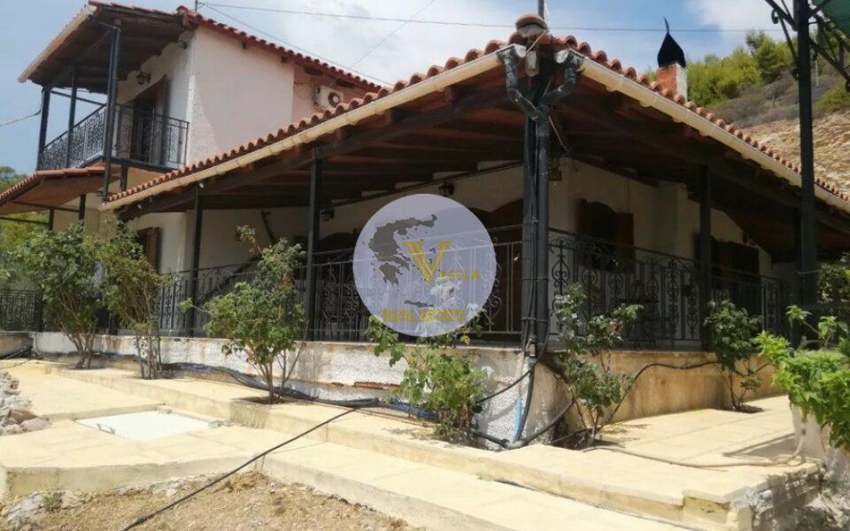 Λουτράκι-Περαχώρα, Σκάλωμα: Πωλείται πλήρως ανακαινισμένη Μεζονέτα 162τ.μ. σε 5012τ.μ. οικόπεδο πολυτελείας σε ισόγειο 2 επιπέδων με αυτόνομη θέρμανση πετρελαίου. Αποτελείται από 3 υπνοδωμάτια, 1 κουζίνα, 2 σαλόνια, Κήπο, αποθήκη και 2 μπάνια. Είναι κατασκευασμένη το 1990 και διαθέτει θέα στη θάλασσα, πισίνα, κουφώματα αλουμινίου, πόρτα ασφαλείας, κλιματισμό, ενεργειακή κλάση B, δάπεδα από πλακάκι, συναγερμό, εσωτερική σκάλα, barbeque, κελάρι και εκκλησάκι. Διαθέτει πυροσβεστικό σύστημα 37 σημείων και 6 κανόνια. Επίσης έχει δική του γεώτρηση 5κιβ/ώρα και αυτόματο πότισμα για τα 250 δέντρα που βρίσκονται στο οικόπεδο. Το ακίνητο έχει την παρακάτω διαρρύθμιση χώρων:ισογειο1ος οροφος Είναι ιδανική για οικογένειες και επιτρέπονται τα κατοικίδια. Τιμή 900.000€. | Κωδικός Ακινήτου: #288